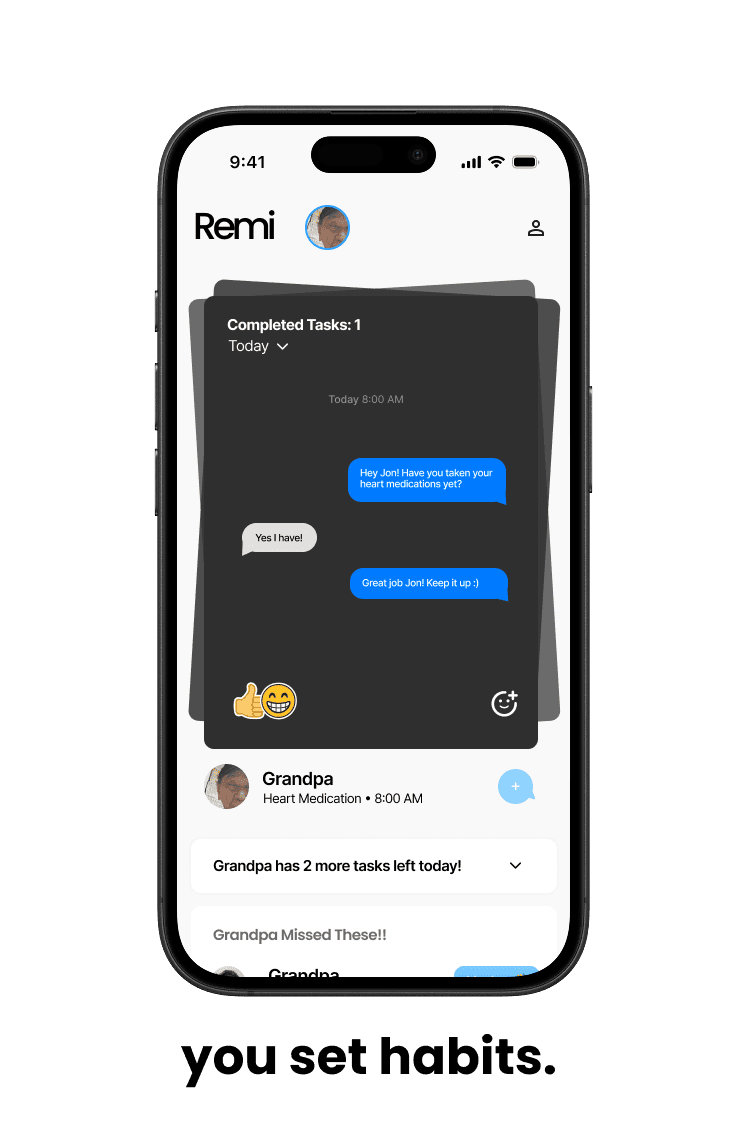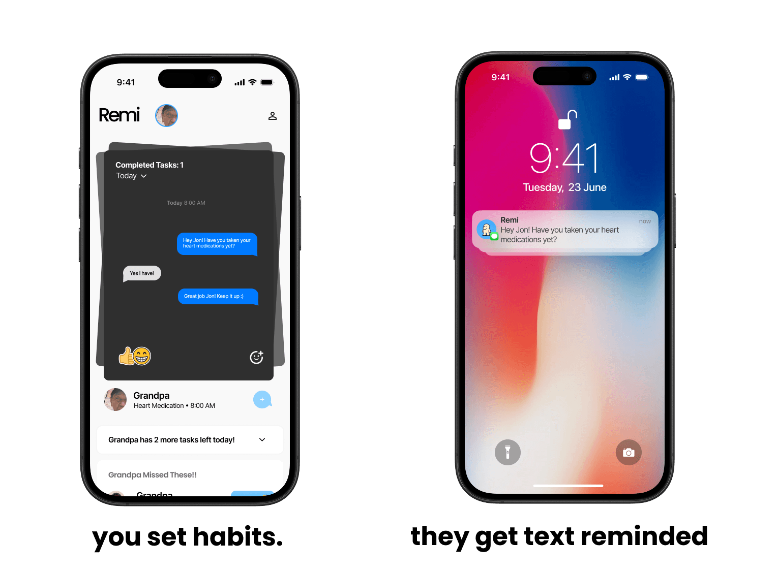 Remi helps your parents build healthy daily habits — you set the goals, we send the reminders. Join the waitlist to see it in action first.